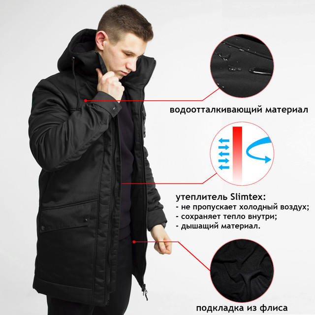 Глибокий капюшон з високою застібкою і теплою підкладкою з хутра здатний надійно захистити голову, шию і більшу частину обличчя від вітру, снігу і морозу.